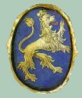 Wappenbeschreibung: in Blau ein links gewendeter, rot gezungter, goldener gekrönter Löwe