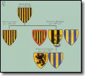 Sehen wir uns den Stammbaum der Wettiner an, fällt auf, daß Dietrich der Zweitgeborene war. Sein älterer Bruder Albrecht regierte nur kurz und starb ca. fünf Jahre nach seinem Vater kinderlos. Mit der Übernahme des gesamten väterlichen Erbes veränderte sich auch Dietrichs Wappen. Einige Zeit nach 1200 ließ er ein neues Siegel stechen; in diesem Reitersiegel werden nur zwei Pfähle ohne Schildrand gezeigt. Dieses Wappen sollte, als nach dem Tod Heinrichs des Erlauchten (1288) die Grafschaft Wettin an das Erzstift Magdeburg kam, als Wappenbild für die Markgrafschaft Landsberg stehen. In der Siegelumschrift lautet der Titel aber wieder Markgraf von Meißen, da es zwischen 1200 und 1210 gestochen wurde und die offizielle Belehnung mit Landsberg erst 1210 erfolgte. Die Farbe der Pfähle dieses Wappens war ursprünglich sehr wahrscheinlich nicht blau auf gold/gelb, sondern wie auf dem Quedlinburger Wappenkästchen (Anfang 13. Jahrhundert) zu sehen ist, schwarz auf gold/gelb. Dadurch lassen sich Rückschlüsse auf die Vorgängerwappen herleiten (siehe Abb.). Die Auffassung, daß der Schildrand in Dietrichs Junggrafenwappen rot war, ist rein hypothetisch, wäre aber nach allem, was wir an Vergleichsmöglichkeiten aus dieser heraldisch frühen Zeit haben, am wahrscheinlichsten. Zu den ältesten und bedeutendsten Besitzungen der Wettiner gehört zweifelsohne die Markgrafschaft Nieder-Lausitz. Das Wappen dieser Herrschaft finden wir in farbiger Fassung im Sachsenspiegel (Mitte 13. Jahrhundert). Es zeigt einen von blau auf gold/gelb fünfmal gespaltenen Schild.